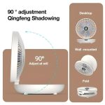 Αυτός ο επιτραπέζιος ανεμιστήρας διαθέτει περιστρεφόμενη βάση με 120 μοίρες αυτόματης οριζόντιας ταλάντωσης και 90 μοίρες κάθετης αναδίπλωσης.