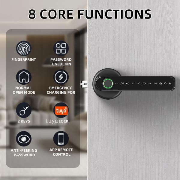 Επιλογές ξεκλειδώματος: Δακτυλικό αποτύπωμα, Μηχανικό κλειδί, Κωδικός πρόσβασης, Εφαρμογή για κινητά (Εφαρμογή Tuya), Προσωρινός κωδικός