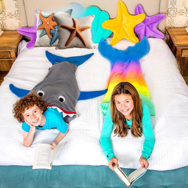 Επιλέξτε ανάμεσα στην κουβέρτα με ουρά καρχαρία ή με ουρά γοργόνας. Ιδανική για ενεργητικά παιδιά που αγαπούν να παίζουν και να προσποιούνται, αυτή η κουβέρτα ικανοποιεί την άγρια πλευρά τους, ενώ τα κρατάει ζεστά.