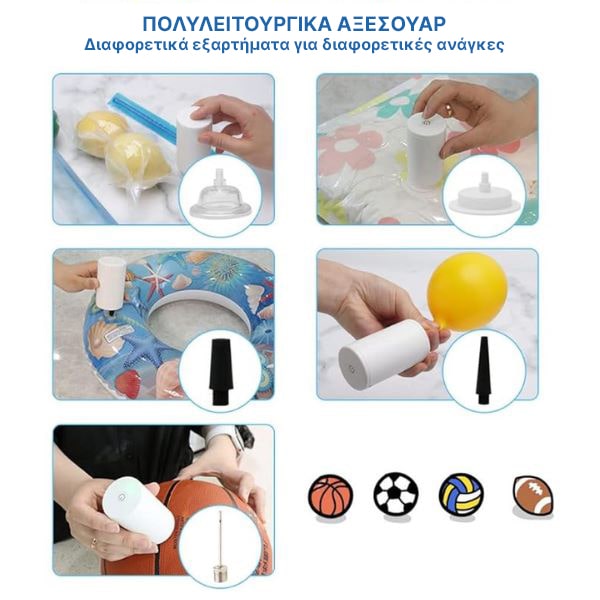 🎈 Διπλή λειτουργία ως αντλία αέρα – Φουσκώνει επίσης σακούλες αποθήκευσης, μπαλόνια και άλλα.