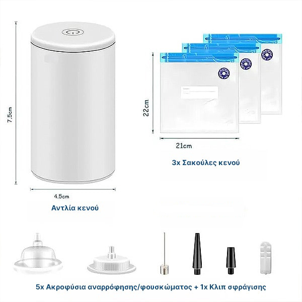 🎈 2-σε-1: Συσκευή σφράγισης κενού και αντλία αέρα